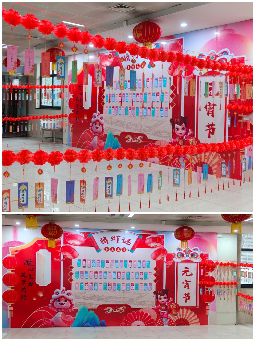 活動(dòng)當(dāng)天,生活區(qū)食堂就餐大廳被裝點(diǎn)得煥然一新。頂棚高懸著大紅燈籠,大廳的柱子掛滿(mǎn)了彩色燈謎紙條,洋溢著濃厚的節(jié)日氛圍。員工們一踏入食堂,就被這喜慶的場(chǎng)景所感染,迫不及待地投入到活動(dòng)中。
