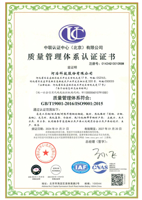 2000年10月,公司依據ISO9001:1994標準,建立了質量管理體系,通過了中國機械工業質量體系認證中心(現中聯認證中心北京有限公司)認證;